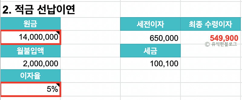 여기서 제가 만든 적금 선납이연 계산기를 공유해드립니다. :)