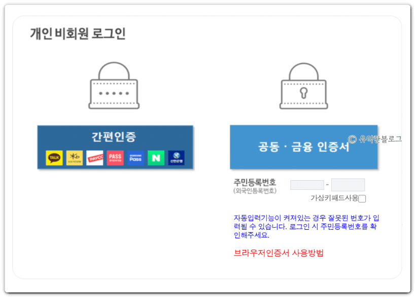 1. ‘개인 비회원 로그인’을 눌러 로그인합니다.