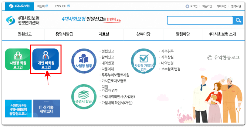 4대사회보험정보연계센터 홈페이지에서 피부양자 등록하기