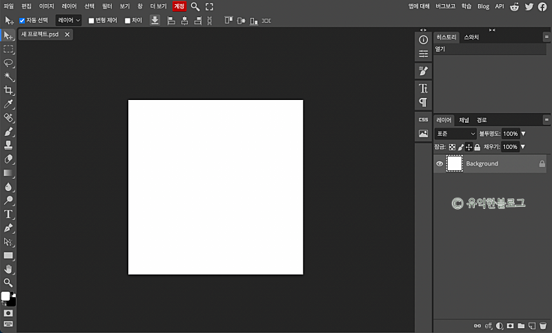 포토피아(photopea)에서는 포토샵과 마찬가지로 레이어, 히스토리 등의 기능을 사용할 수 있습니다.