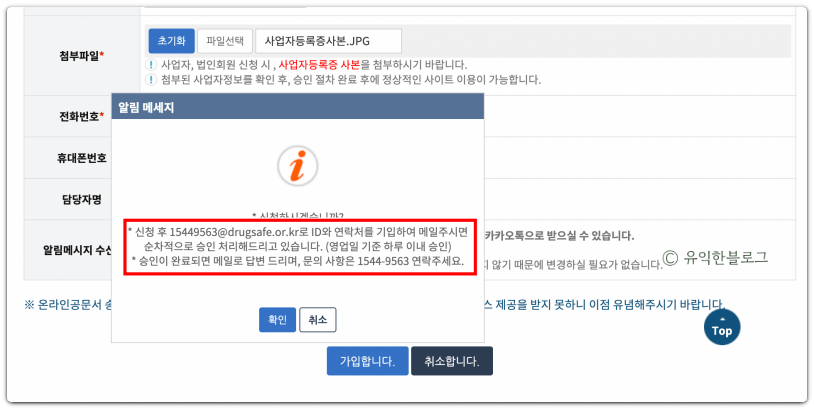 승인 처리가 되지 않으면 접수 자체가 안 되기 때문에 반드시 메일을 보내 승인을 받으셔야 해요.