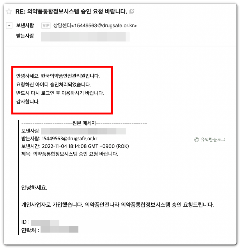 전 금요일 오후 6시 넘어서 메일을 보냈는데요, 월요일에 바로 이렇게 처리가 되었다는 답장이 오더라고요.