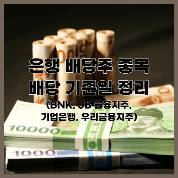 이번 글에서는 주요 은행 배당주 종목에 대해 살펴보고, 배당 기준일에 대해 간단히 정리해보도록 하겠습니다.