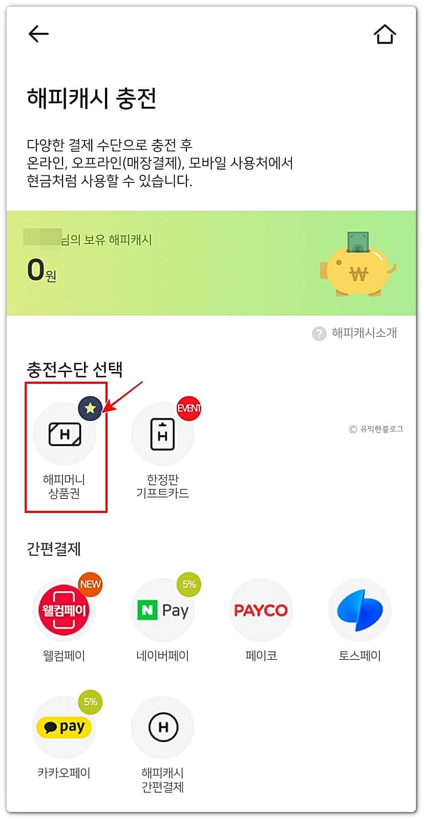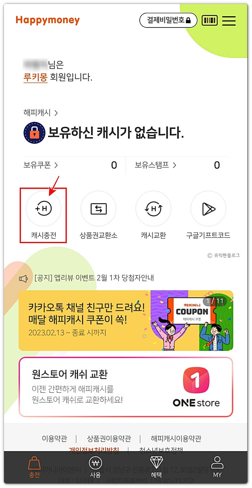 step 1. 해피캐시 충전하기