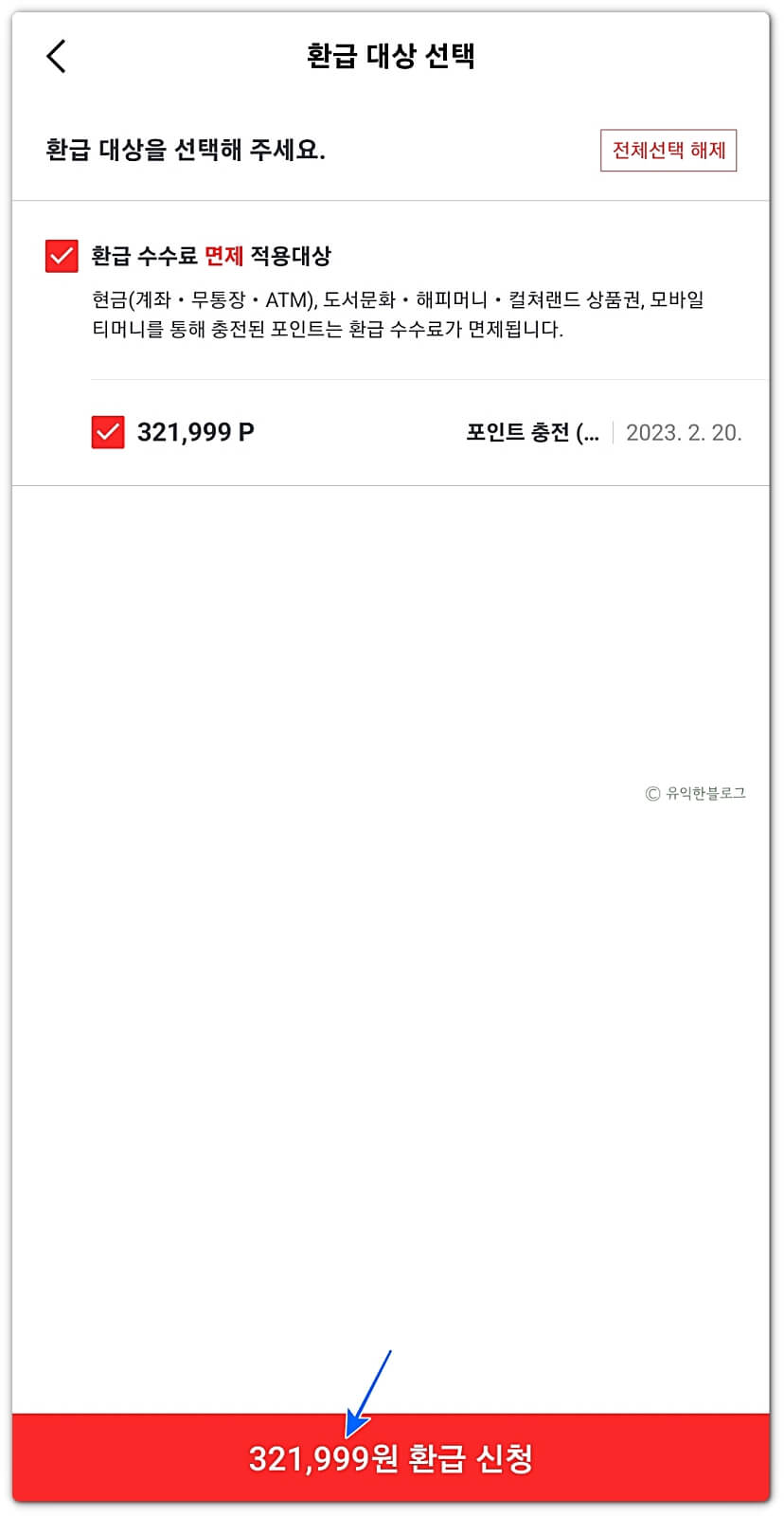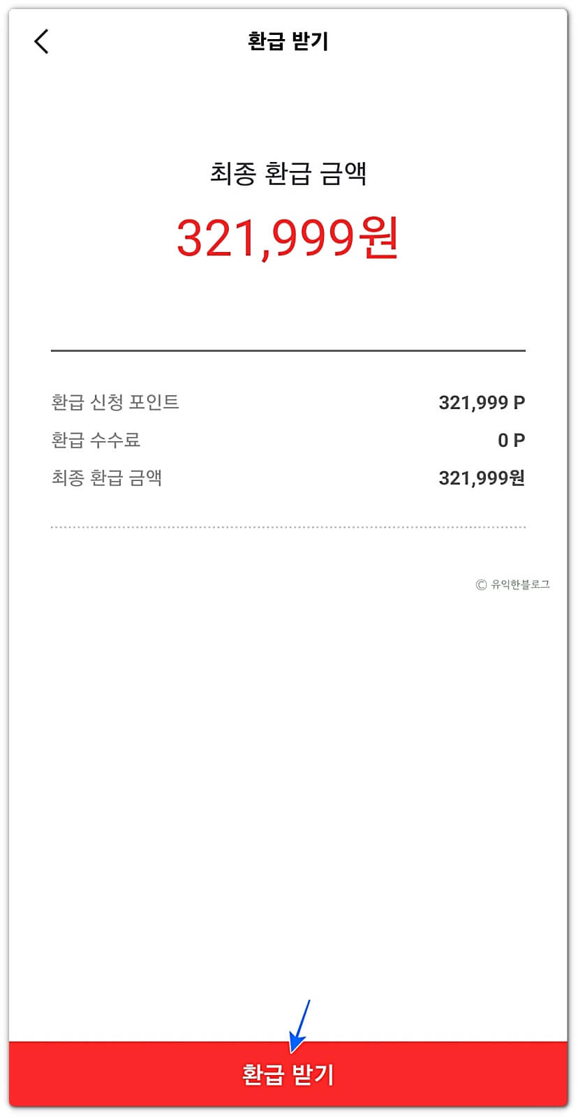 마지막으로 ‘환급 받기’ 버튼을 한번 더 눌러주면 해피머니 현금화가 완료됩니다.