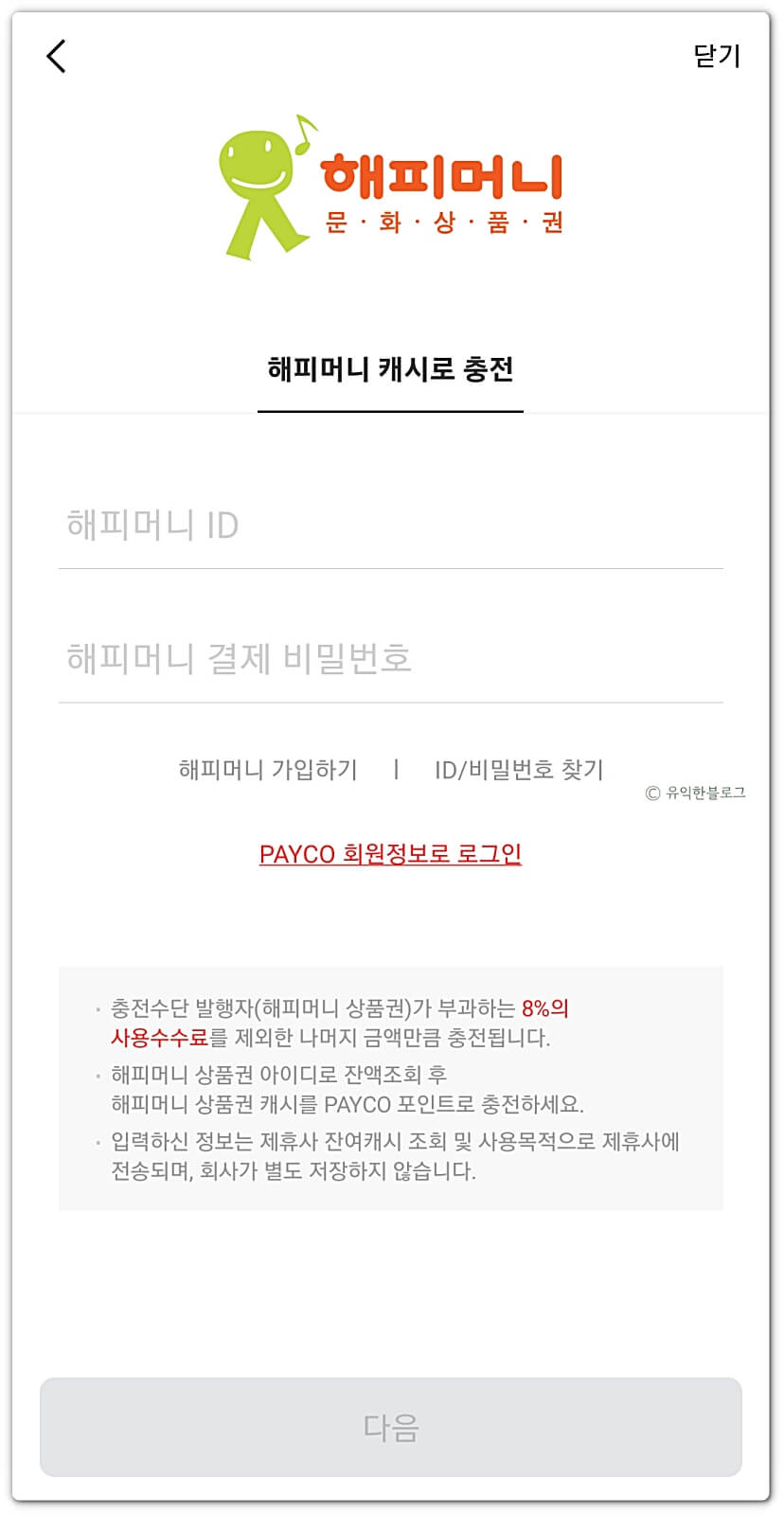 해피캐시 충전을 완료하셨다면, 해피머니 현금화의 다음 단계를 위해 이제 페이코 앱을 설치하셔야 합니다.