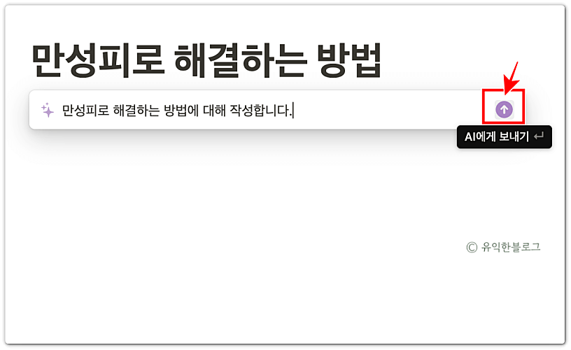 ‘만성피로 해결하는 방법에 대해 작성합니다.’ 라는 문구가 뜨는데요, 오른쪽의 화살표 버튼(AI에게 보내기)을 눌러주세요.