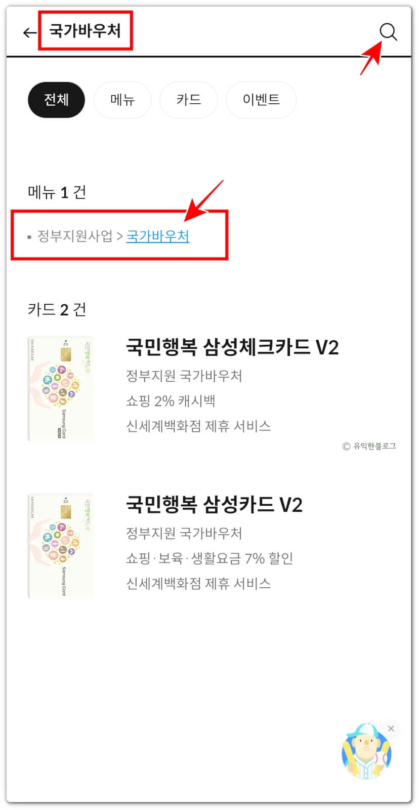 만약 산부인과에서 임산부 등록을 전산으로 해 줬다면 카드사 앱으로 간편하게 신청이 가능한데요. 사용하는 카드사 앱에서 ‘국가바우처’라고 메뉴 검색을 하시면 쉽게 찾으실 수 있습니다.