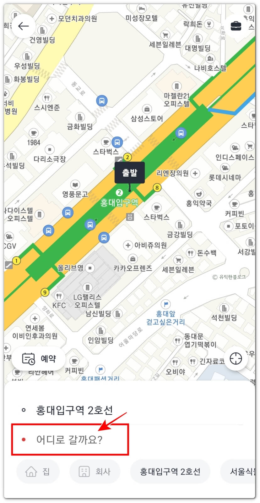(출발지는 내 현재 위치 기준으로 뜨는데요, 해당 부분을 터치하면 다른 지역으로 변경이 가능합니다.)