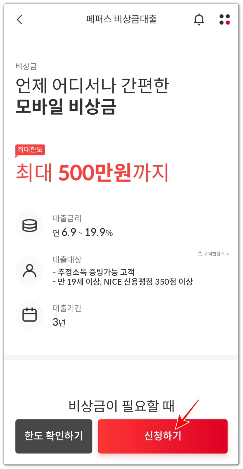 페퍼저축은행 페퍼스비상금대출 신청방법