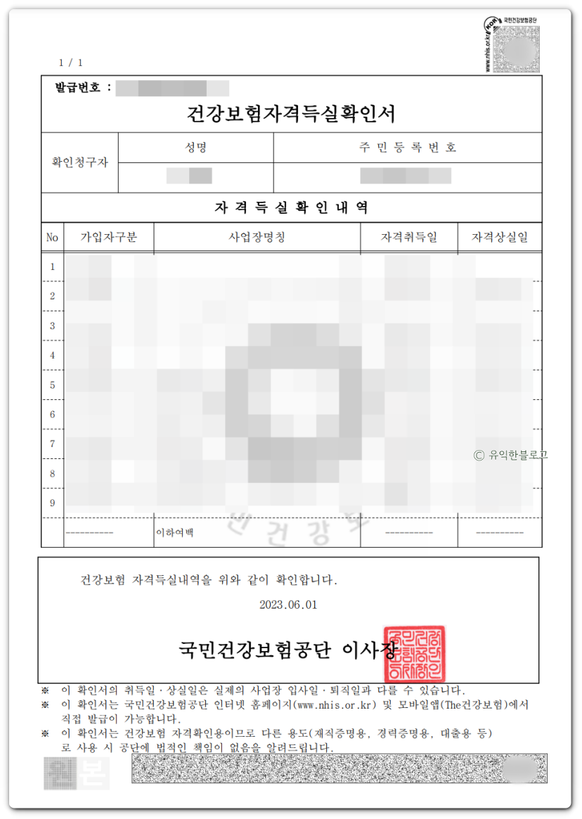 내가 다닌 회사의 이름이 나오다 보니 경력 증명용으로 사용되기도 하고, 현재 건강보험 자격에 대해서도 확인할 수 있다보니 각종 정부 사업이나 지원금을 신청할 때 필요한 경우도 있습니다.