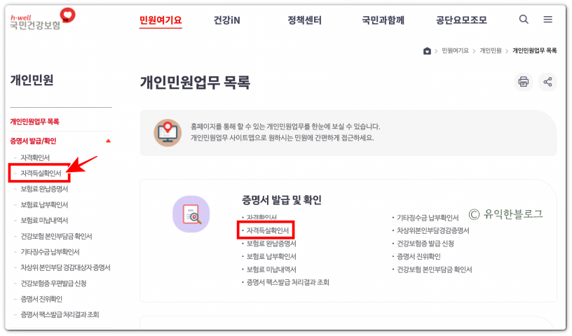 건강보험자격득실확인서 발급 방법 : 인터넷(PC)