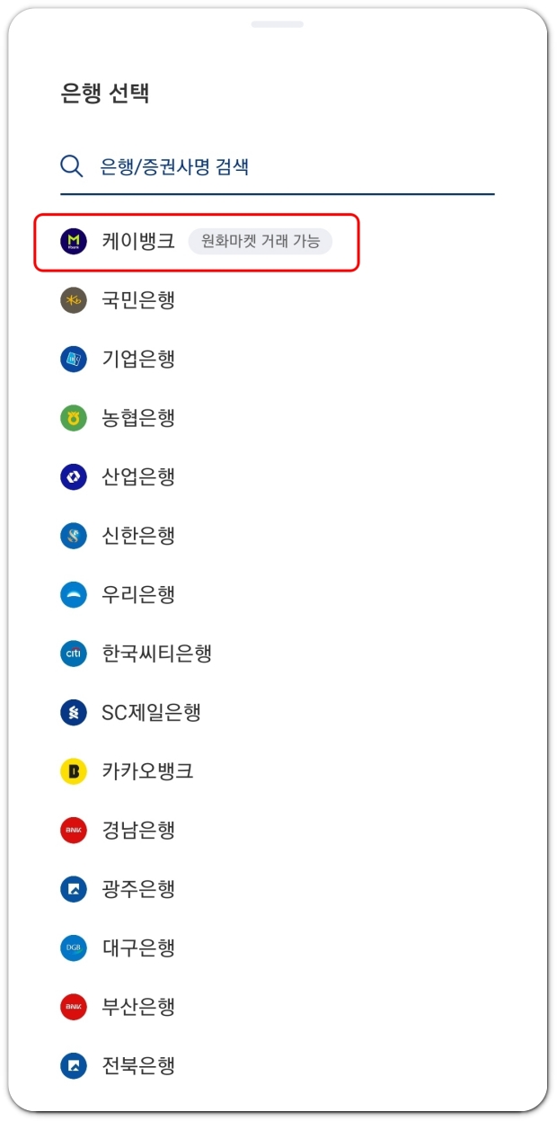 먼저 업비트 계좌를 만들기 위해서는 케이뱅크 계좌가 있어야 합니다. 케이뱅크 계좌는 어플 설치 후 비대면 방식으로 간단하게 개설이 가능하니 미리 개설해 두시면 되겠습니다.