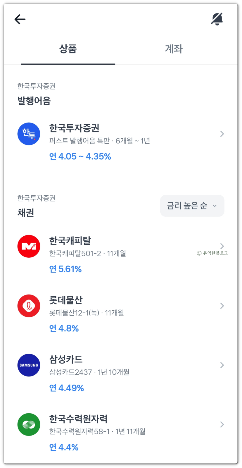 최근에는 많은 분들이 이용하는 토스뱅크에서도 채권투자가 가능해졌는데요. 채권에 관심있는 분들 중 토스뱅크 이용중인 분들이라면 토스 앱을 통해 소액부터 채권투자를 시작해봐도 좋을 듯 합니다.