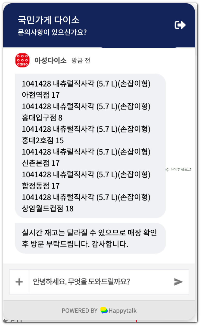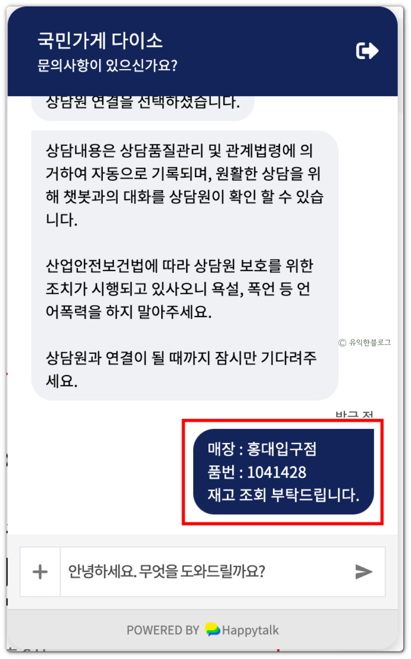 다이소 재고확인 방법 두번째, 다이소 챗봇 문의