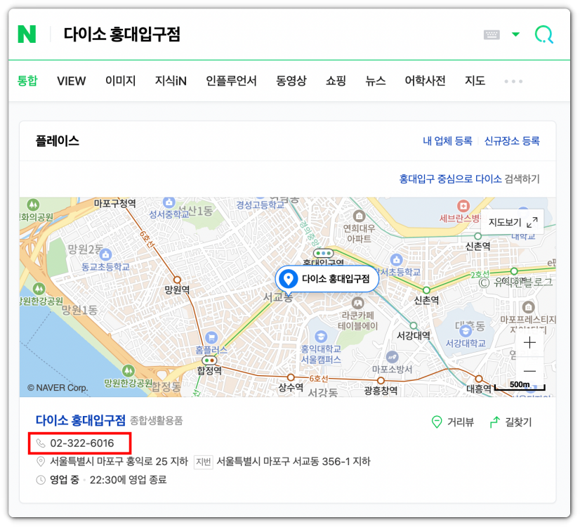 매장 전화번호는 네이버에 [다이소 OO점] 이라고 검색하면 어렵지 않게 확인할 수 있어요.