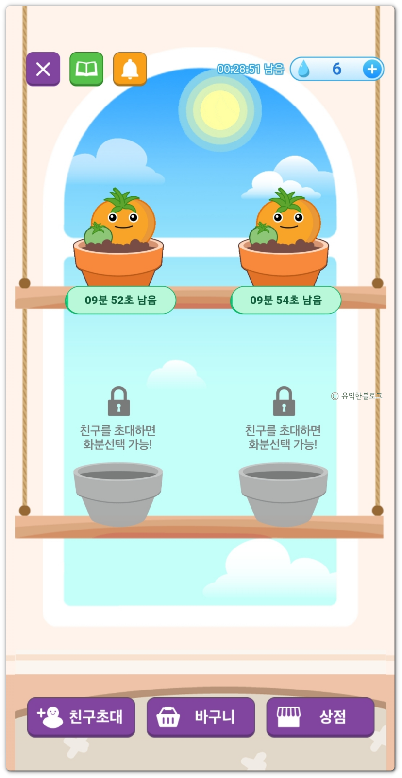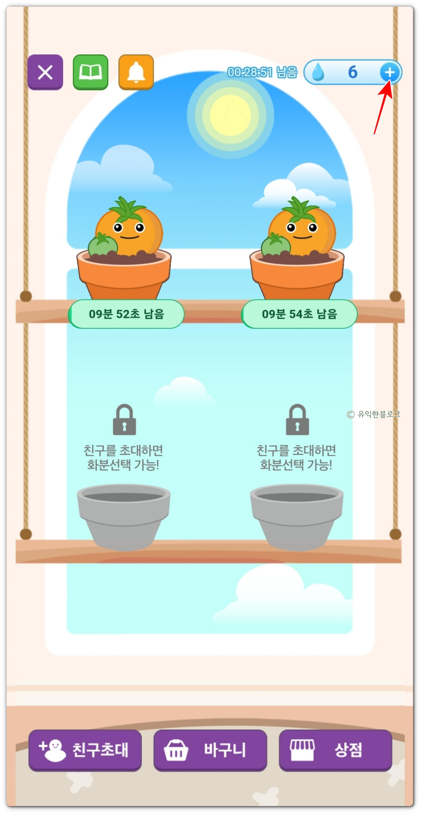 기본적으로 화분 2개를 사용할 수 있고, 친구 초대를 하면 화분 2개를 더 사용할 수 있게 됩니다. 총 4개의 화분을 키울 수 있는 것이죠.