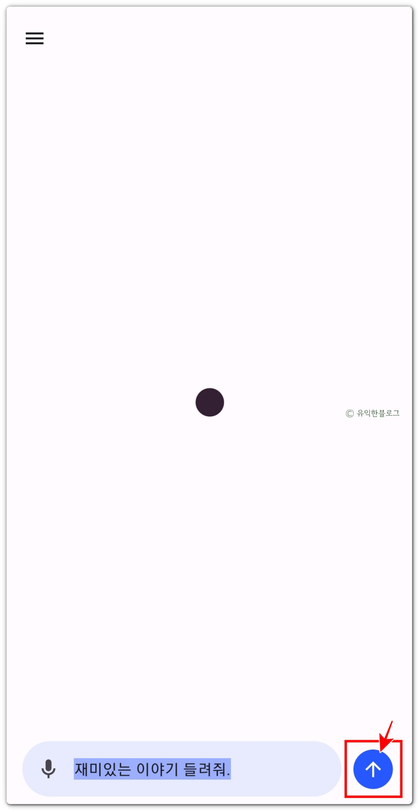 그럼 이렇게 음성이 자동으로 인식되어 질문 내용이 입력되게 되는데요, 오른쪽에 있는 화살표 버튼을 누르면 해당 내용이 챗gpt에게 전달되게 됩니다.