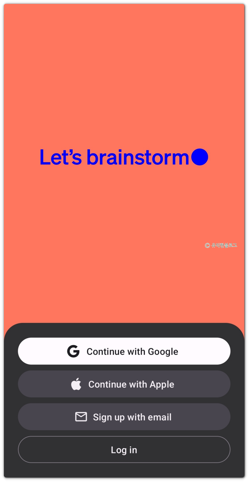 설치하고 처음 실행하면 로그인을 하라는 화면이 뜹니다. 기존에 가입을 해 두었다면 [Log in]을 눌러 로그인을 진행하면 됩니다.