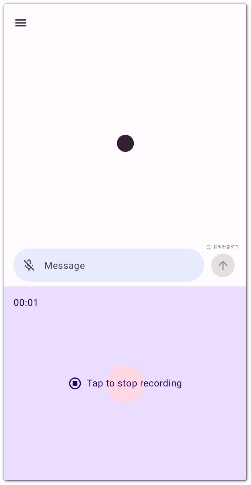 직접 음성으로 말을 한 뒤, 보라색 영역을 누르면 녹음이 중단됩니다.