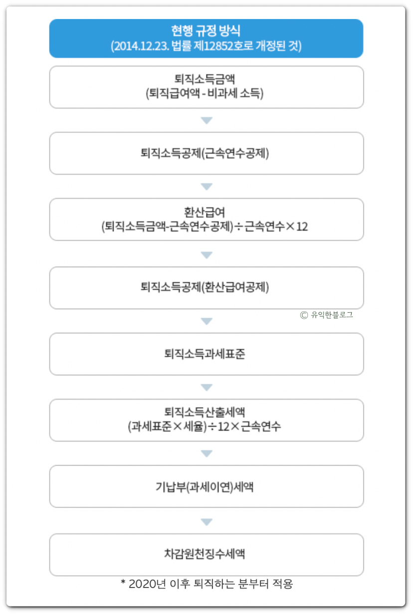 - 지급받은 전체 퇴직금에서 근속연수에 따라 공제를 합니다.