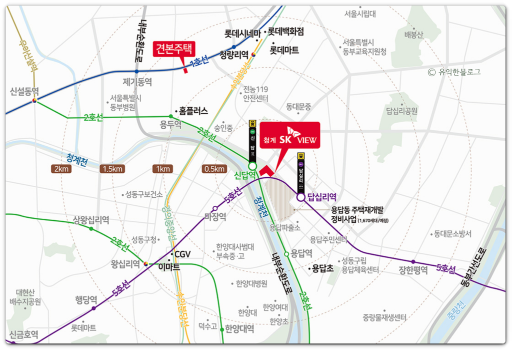 청계 sk뷰는 서울 2호선 신답역과 5호선 답십리역을 함께 누릴 수 있는 더블역세권 입지로 주목받고 있는 단지이기도 한데요.