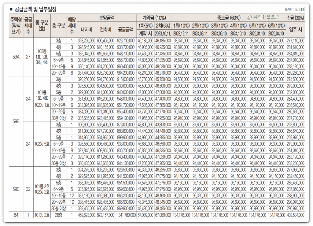 주택형 및 공급물량은 아래 표를 참고해보시면 됩니다.