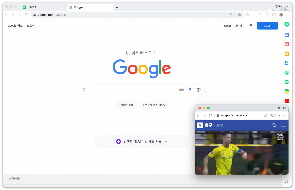 특히 모바일창 열기 기능은 컴퓨터를 하면서 축구 경기 중계 등 동영상을 한쪽에 열어놓는 등 멀티태스킹 용도로 활용할 수도 있답니다.