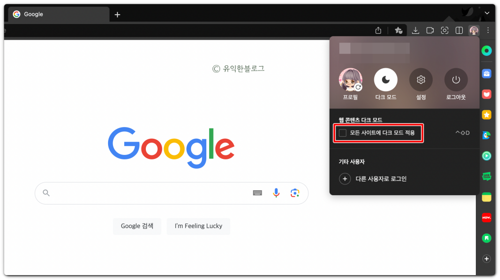 지금까지 웨일 다크모드 설정 방법과 모바일창 열어 활용하는 방법까지 간단하게 알아보았습니다.