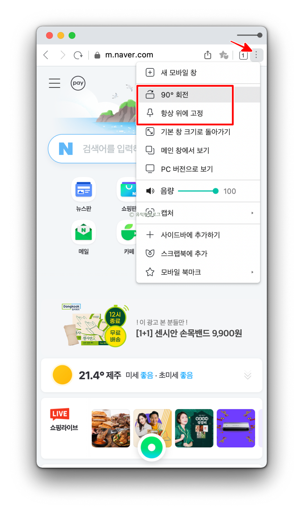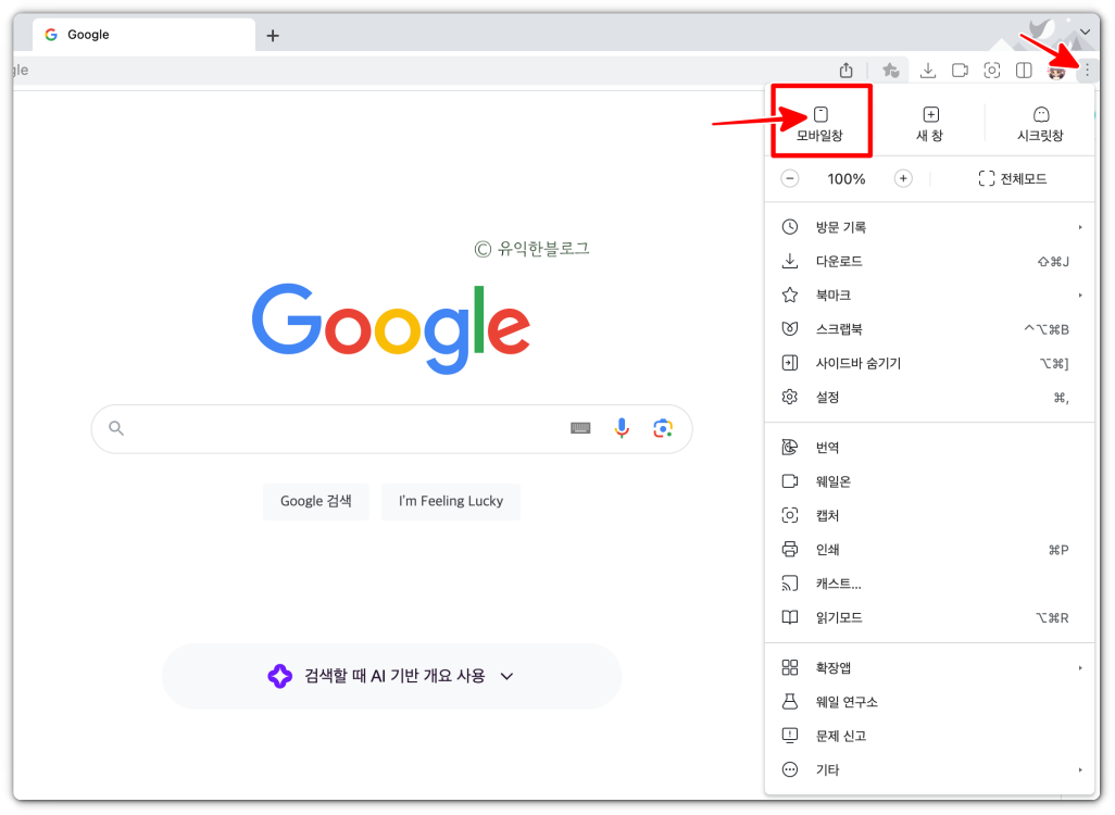 네이버 웨일 브라우저 모바일창 켜는법