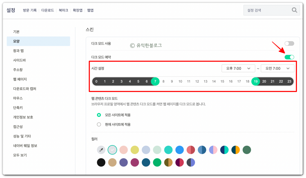 웨일 다크모드 예약 시간 설정하기