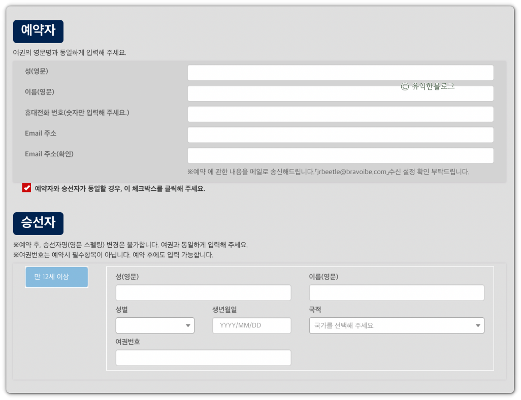 예약 후 승선자명 변경은 불가하니 꼭 정확하게 입력하시길 바래요. 잘못 입력했을 시 수수료를 물고 취소한 뒤 다시 예약을 해야 합니다.