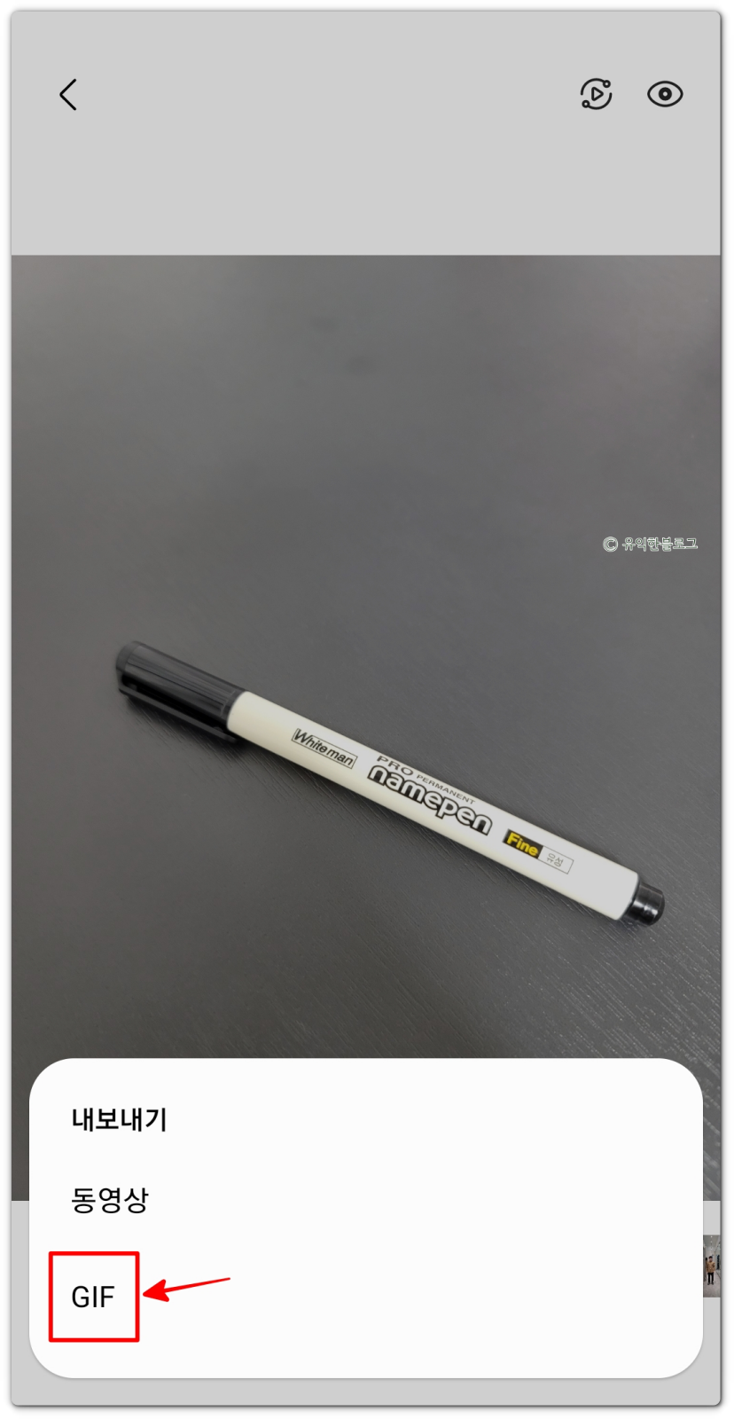 그러면 동영상 또는 gif 중 선택하는 옵션이 뜹니다. ‘gif’를 선택해주세요.