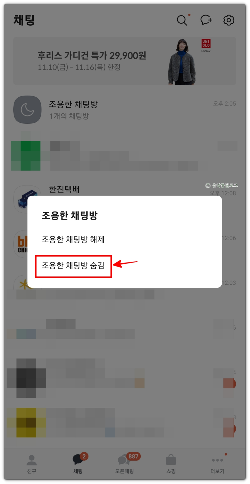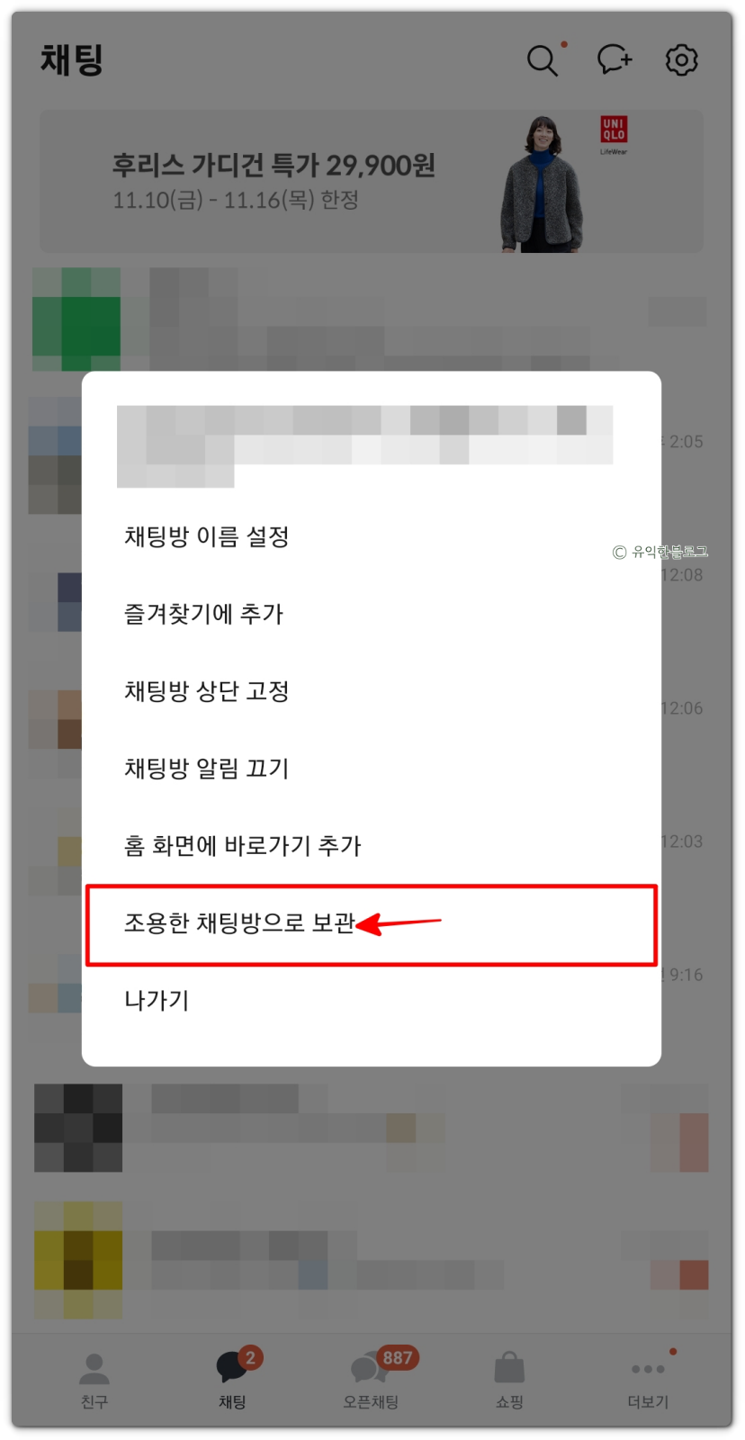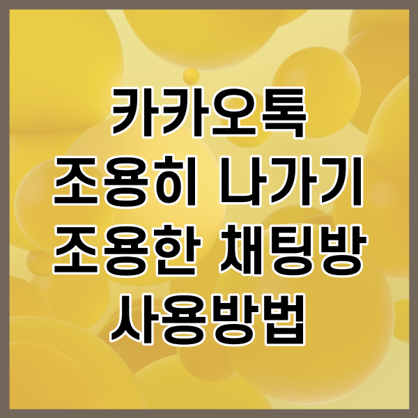 카톡 조용히 나가기 + 조용한 채팅방 사용하는 방법 정리