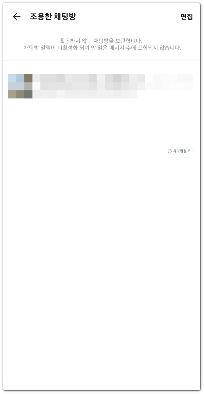 조용한 채팅방 활성화 시 활동하지 않는 채팅방을 따로 보관하거나 안 보이게 숨겨둘 수 있는데요.