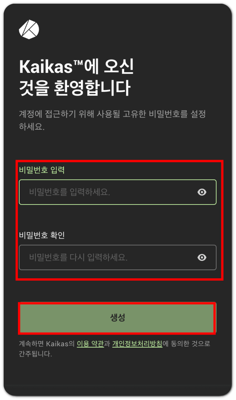 step2 : 카이카스 지갑 생성하기 (계정 만들기)