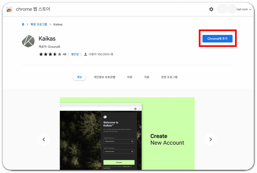 step1 : 카이카스 지갑 확장 프로그램 추가하기