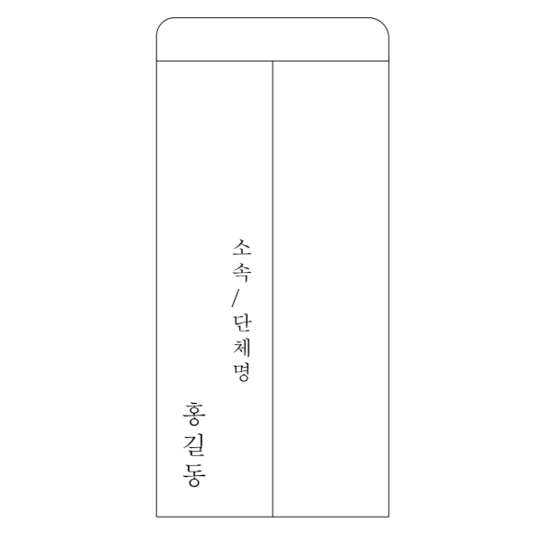 봉투 뒷면에는 봉투 중앙선 기준으로 좌측에 이름과 소속명(회사 이름이나 모임 이름 등)을 세로로 적으면 됩니다.