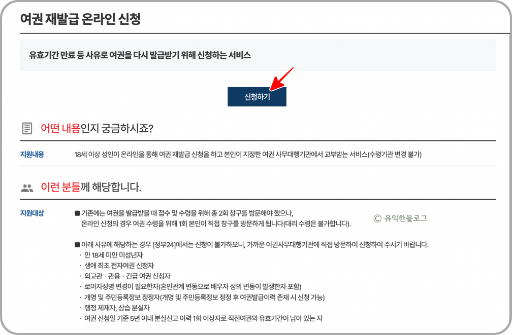 다만 여권 분실 및 훼손으로 인해 재발급받는 경우나 여권 수록정보 변경(사진, 이름 등)이 필요한 경우에는 방문 신청만 가능하니 미리 참고하시길 바래요.