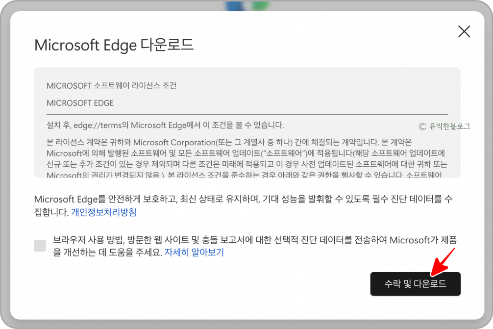 아래와 같은 창이 뜨면 [수락 및 다운로드] 버튼을 눌러주시면 됩니다.