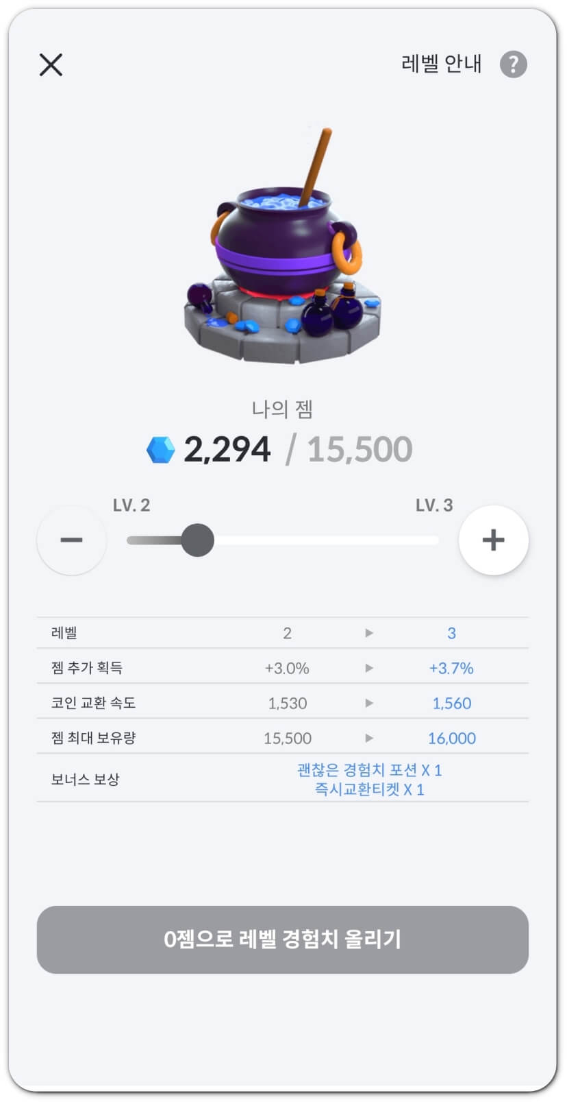 레벨업 하고 젬 더 많이 얻기