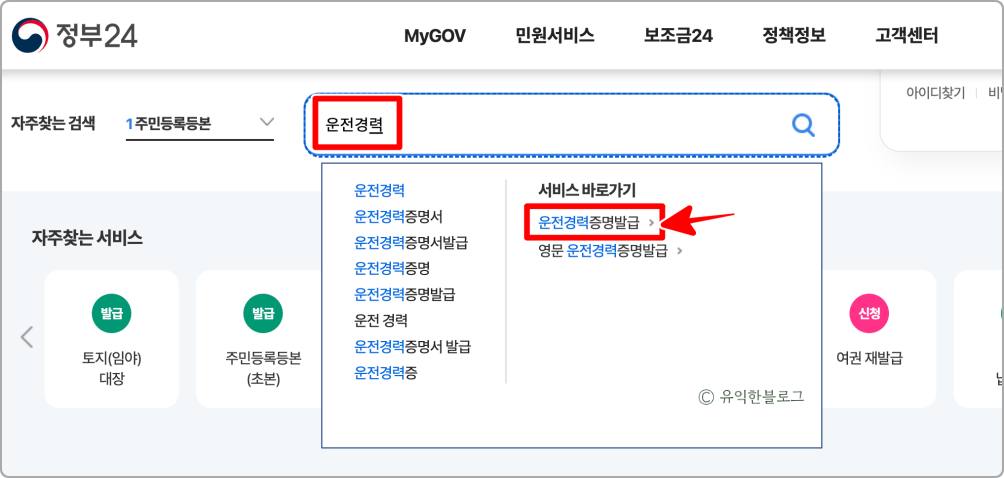 운전경력증명서 발급 방법 첫번째, 정부24