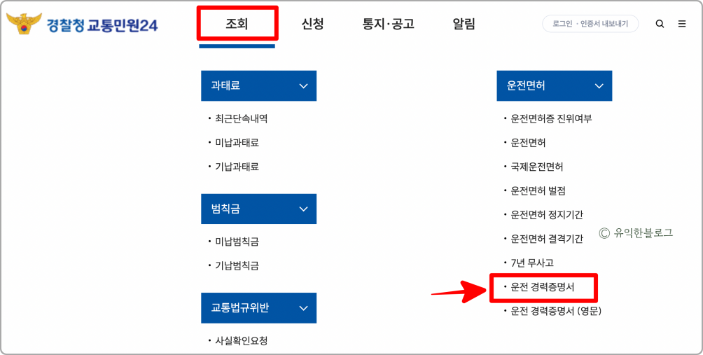 운전경력증명서 발급 방법 두번째, 경찰청 교통민원24