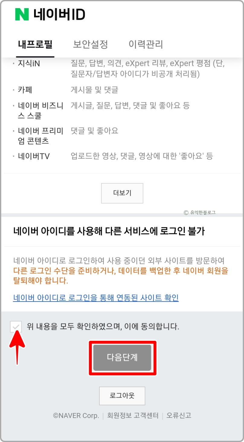네이버 아이디를 이용해 타 사이트에 로그인을 해서 사용하고 있었다면 탈퇴 이후 해당 사이트에 로그인할 수 없으니 주의하셔야 합니다.