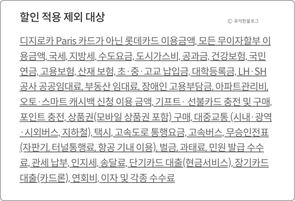 👉 세금, 공과금, 4대보험, 각종 학교 납입금, 상품권 등 전부 할인 대상에서 제외됩니다.