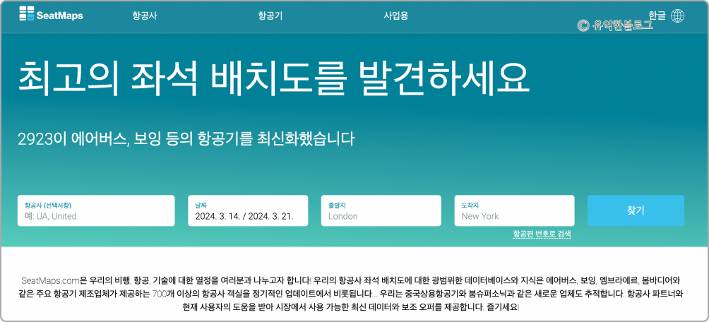 특히 오늘 알려드린 시트맵스(Seatmaps) 사이트는 상세한 좌석 정보까지 함께 확인할 수 있으니 비행기 예매 시 함께 활용해보셔도 좋을 듯 합니다.