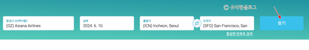 사이트에 접속하면 아래와 같은 화면이 보이는데요. 항공사, 날짜, 출발지, 도착지를 입력한 다음 [찾기]를 클릭하면 됩니다.