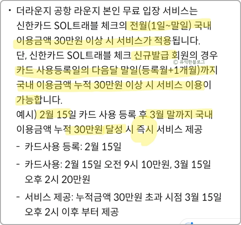 (출국일이 얼마 안 남았을때 라운지 무료 입장용으로 활용하기 좋겠죠? 물론 실적은 채워야 하지만요.)