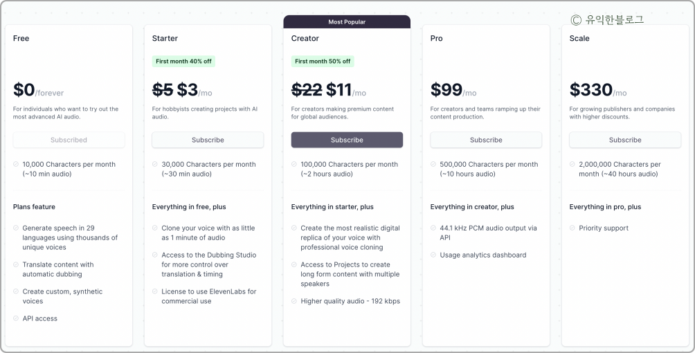 일레븐랩스 유료 가격