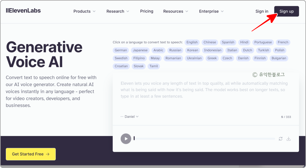 먼저 일레븐랩스 홈페이지로 접속을 해 주세요.